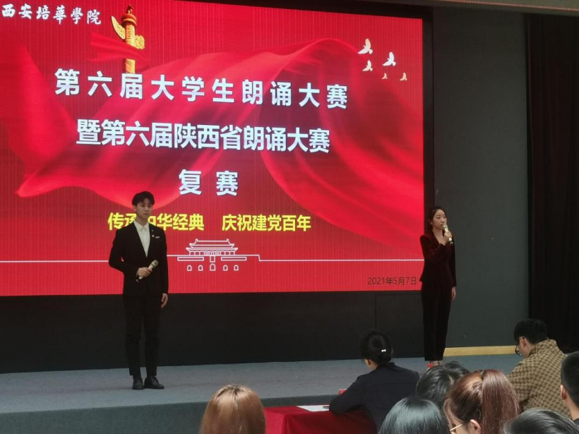 百年征程波澜壮阔,百年初心历久弥坚。为中国共产党成立100周年,回顾党的百年历程,进一步坚定文化自信,传承和弘扬中华优秀传统文化,培养爱国主义精神,5月7日,西安培华学院第六届大学生朗诵大赛暨第六届陕西省朗诵大赛复赛在培华学院汇知楼阳光厅落下帷幕。