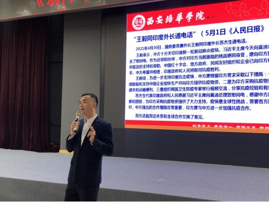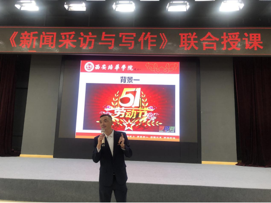 为贯彻落实我校应用型人才培养特色,促进教学改革发展,鼓励和支持全校师生积极开展教育教学改革,不断提高人才培养质量。《新闻采访与写作》课程作为校级应用型课程示范课,也是西安培华学院、传媒学院学分制课程第一批试点课程,5月8日上午八点在汇知楼阳光厅,传媒学院首次开展了关于《新闻采访与写作》课程的联合授课。此次联合授课由《新闻采访与写作》课程组组长、副院长赵伟为主讲,参与教师包括了《新闻采访与写作》课程组的甘辉杰老师与谢欣榕老师,以此加强经验交流,推广教改研究成果,促进学科发展,提升我院教育教学质量。