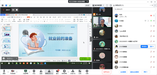 讲座最后,牛鸿英教授为即将毕业的同学进行了心理疏导,建议同学们不要惧怕未来,要正面未来的不确定性,告诫同学们人生需要一点盲目的勇气和自信,讲座在同学们的提问和感谢中结束。