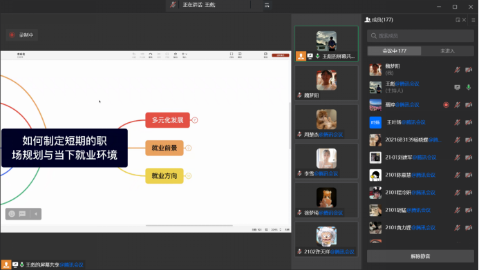 2022年12月14日,戏剧影视文学专业承办的《职业生涯规划与就业指导(二)》“探索工作世界”课程第三讲,以线上会议形式开展。本期主题为“毕业生如何制定短期的职场规划与当下就业环境”,由系主任聂婷老师主持,特邀本专业优秀毕业学子王彪作为主讲嘉宾,传媒学院2021级戏剧影视文学与广播电视编导专业同学共同参会。
