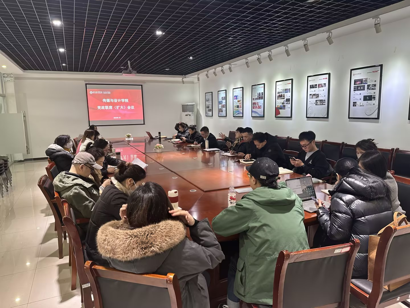 2025年1月3日,传媒与设计学院在汇知楼第四会议室召开党政联席(扩大)会议。本次会议旨在深入贯彻落实党的教育方针,加强学院内部管理,提升教育教学质量,进一步推动学院全面发展。学院领导班子、党委委员、各专业带头人、负责人、系主任和教研室主任参加了此次会议,会议由党委书记兼行政副院长王飞主持。