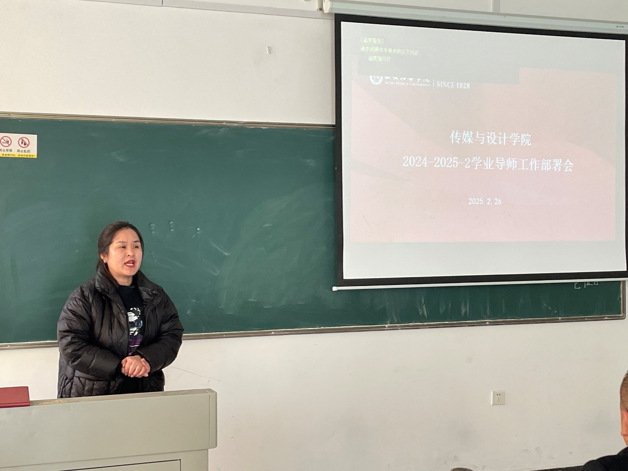 2025年2月26日下午2点30分,传媒与设计学院于汇知楼6415教室召开了2024-2025第二学期学业导师工作部署大会。此次会议由学生综合素质发展教研室主任陈雪老师主持,副院长张荣花、党委副书记南斌红以及我院全体学业导师共同出席,会议旨在全面部署和落实本学期学业导师的相关工作,进一步推动学院学业指导工作的规范化、专业化发展。