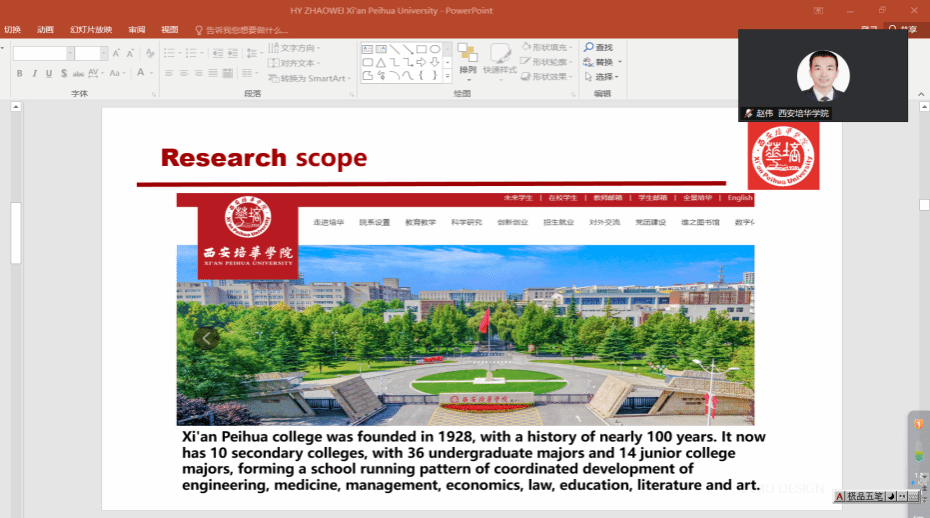 2025年10月19日,西安培华学院传媒与设计学院赵伟教授在第十八届亚洲组织发展国际研讨会上进行线上主题发言,向来自15个国家和地区的专家学者展示了我校在应用型本科教育领域的创新成果,获得与会专家的高度评价和热烈反响。