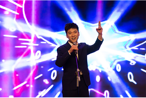 比赛在同学们的倒数声中正式开始,并由DM音乐工作室的“Four voice”带来燃爆全场的音乐表演。本次决赛共有14名选手参加并且分为专业组、非专业组,其中包括晋级决赛选手12名,复活投票选手2名。