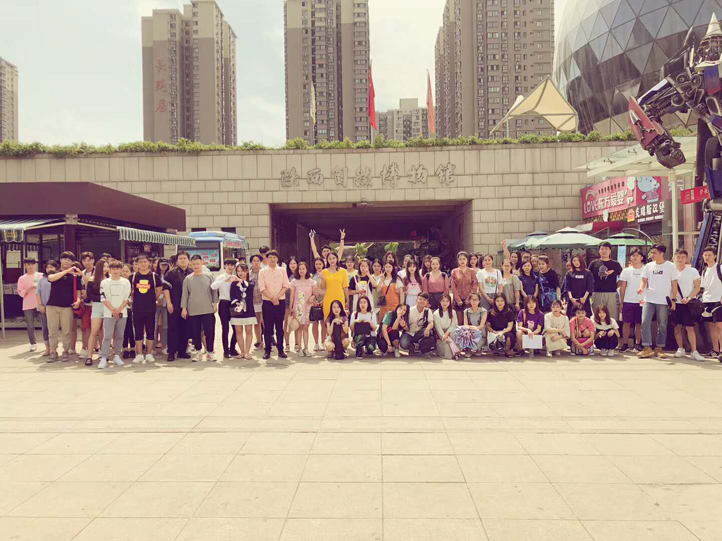 (16级播主师生在陕西自然博物馆门前合影留念)