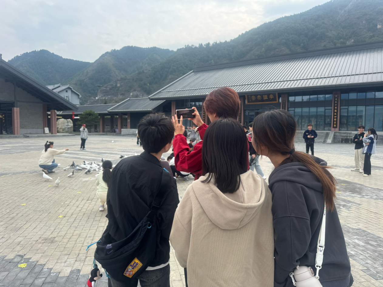 第一天,师门们从学校出发,历时两个小时抵达位于商洛市洛南县的华阳写生基地,在进行校外实践安全教育后前往洛南县仓颉小镇进行拍摄,这里建有中华仓颉汉字文化博览园,是了解国家级非遗“仓颉传说”的绝佳地点。学生们在这里聆听了仓颉造字的古老传说,感受了汉字文化的深厚底蕴和独特魅力,