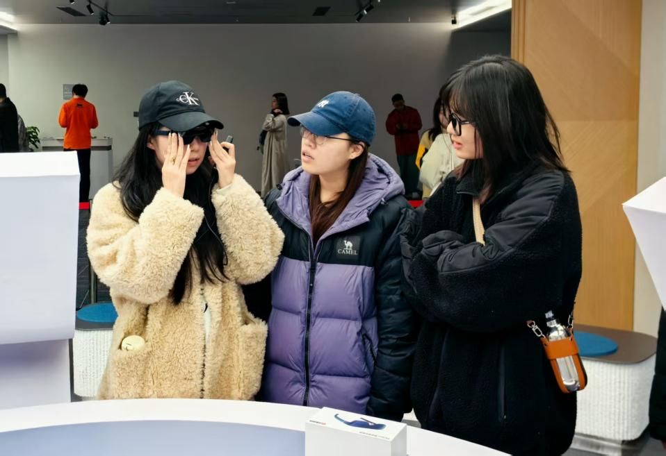 在XR电影产业基地工作人员的引导下,师生们先后参观了坐观式内容测评实验室、VR技术体验区及动作捕捉体验区等核心功能区域,全方位了解影视科技的应用场景与发展态势。