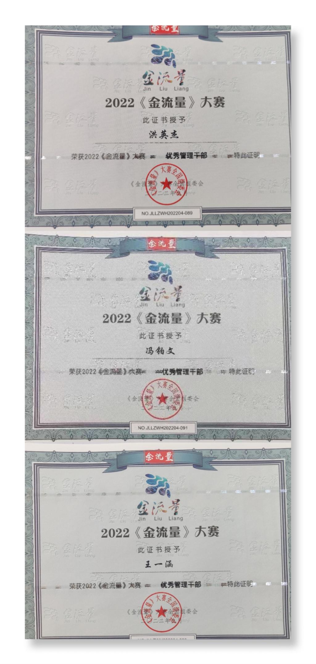 金流量融媒体主持人大赛优秀管理干部证书