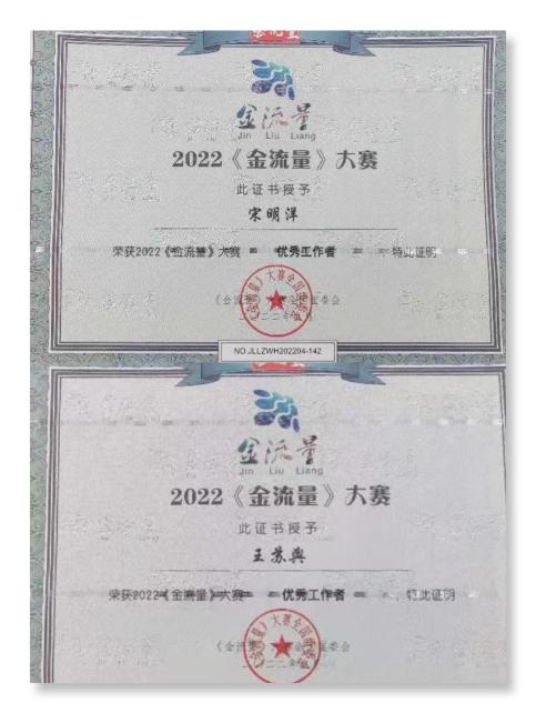 金流量融媒体主持人大赛优秀工作者证书