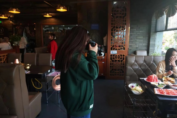 保吉巷的社区工作人员来到京顺祥铜锅涮肉门口和志愿者一同开始拍摄任务。本次拍摄的主持人是该社区的负责人。拍摄前,志愿者耐心的与主持人沟通拍摄如何找镜头角度,如何表现得更加自然等注意事项,以此来缓解主持人的紧张感。