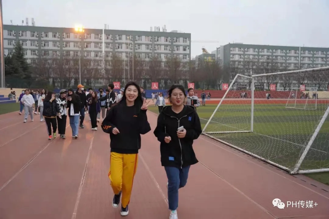 参与的同学络绎不绝,积极响应号召,为我校第十八届田径运动会运动会赛前做足准备。健康跑无名次之分,无速度之分。路灯逐渐亮起,夜幕之中,同学们矫健的身影穿梭在田径场的各个角落,尽情释放着一整天的压力与情绪,不少同学争相赛跑一较高低,成为一道亮丽的风景线。