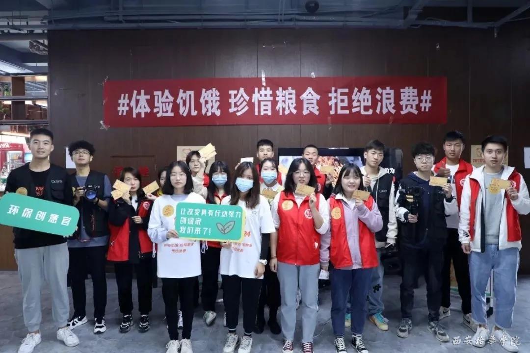 创享携手创绿家举办“饥饿24小时”公益体验活动鼓励同学们身体力行以“光盘”为荣,以“舌尖上的浪费”为耻“厉行节约,反对浪费”才应是当代大学生活新风尚。