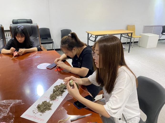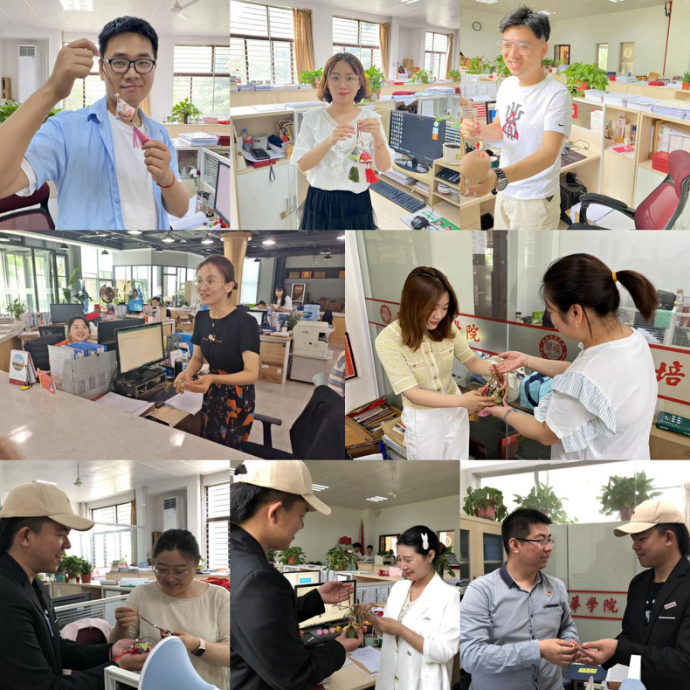 迎端午,送祝福。10日上午,传媒学院组织10余名团学青干部,为校领导、学生服务中心老师、学院领导、教师代表、辅导员代表等送上亲手缝制的香囊共计百余个。