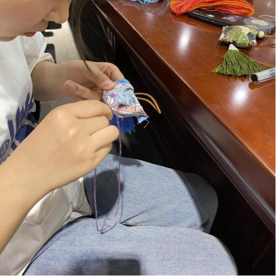 据悉,我院学生会组织号召10余名擅长手工的同学于汇知楼第三会议室为此次活动亲手缝制香囊。活动中,团学组织负责人们有序发放制作材料,耐心协助穿针引线,热心做好服务工作。花花绿绿碎布头,三角四角走流苏,娴熟的针线、古色的制作、精美的香囊便在同学们私语中灵动,悠悠荷包香便在言笑晏晏中飘溢。欢声笑语中缝制出一个个精美玲珑的香囊,彰显了传媒学子的精神风貌与文化认知。传媒学院学生会执行主席薛松主席表示:“一群人围坐在一起,用心一针一线缝起来。不管香囊是秀气的,还是笨拙的,只要是自己亲手制作的,就有独特的意义。在这个过程中,大家都收获了满满的幸福与祝福。”