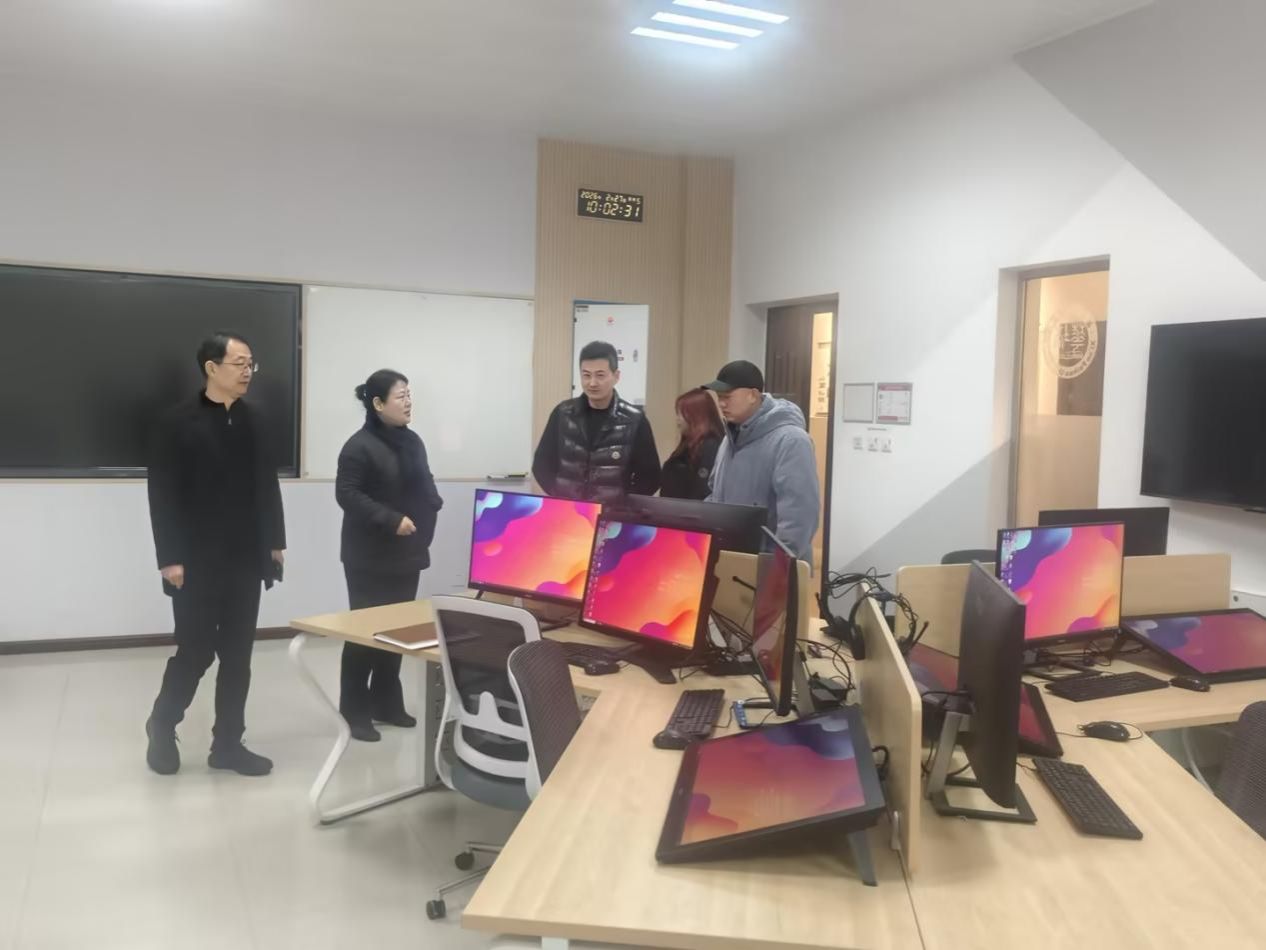 来访嘉宾一行先后实地参观了学院非线编剪辑室、VR教室等专业实践教学场所,详细了解学院在影视编导、数字媒体、虚拟现实技术等方向的教学条件、设备配置与学生实践成果。企业负责人对学院完善的实践教学体系、前沿的实训平台建设给予高度评价,认为双方在专业匹配度、资源互补性上具备良好合作基础。