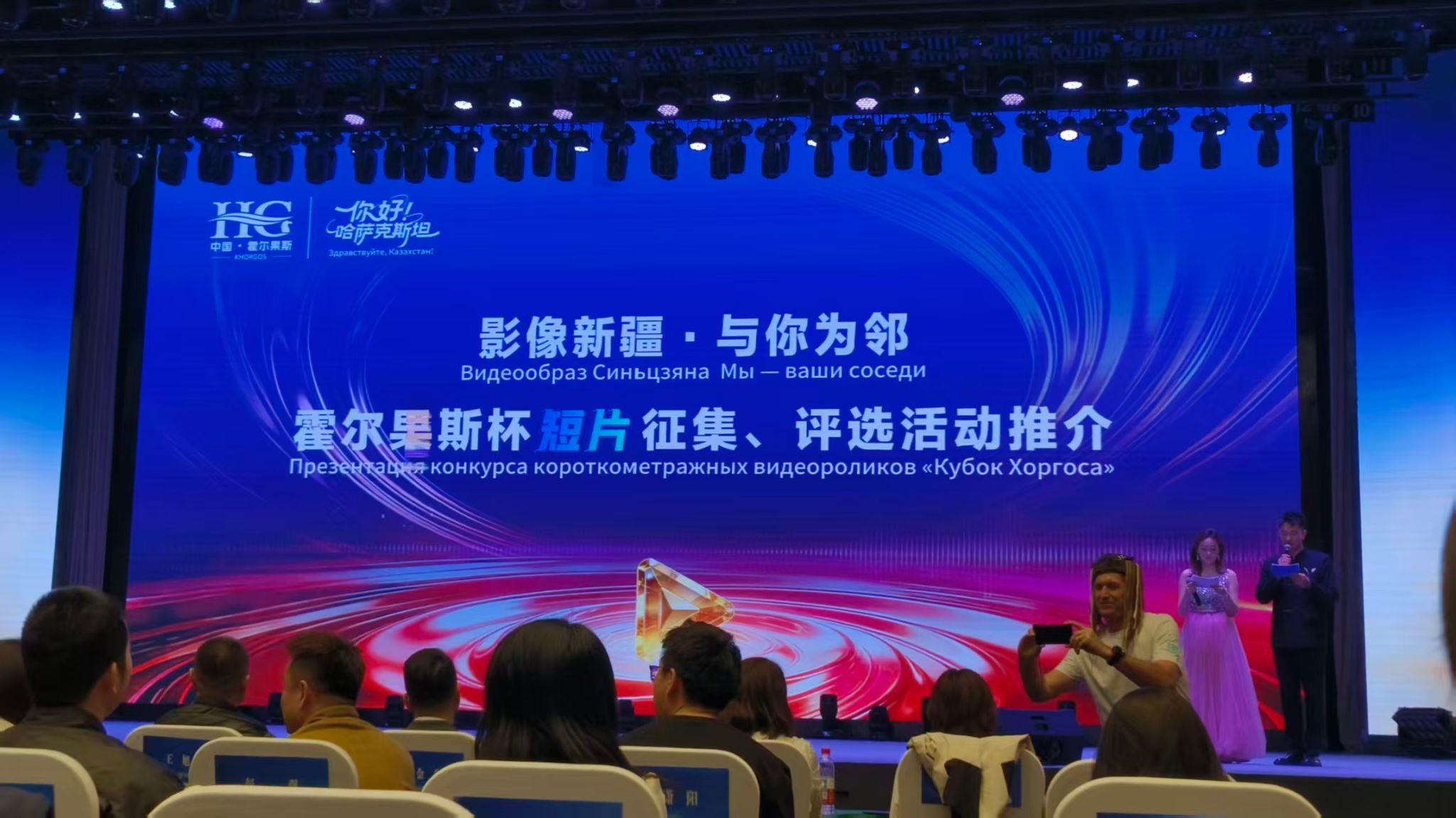 首届“与你为邻·霍尔果斯杯”国际短视频大赛展播活动现场