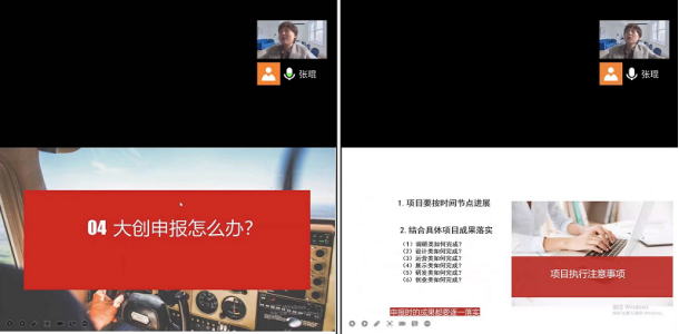 传媒学院院长助理张琨老师结合自己多年指导大创项目的经验,从大创项目是什么、大创项目哪里来、大创项目如何做、大创项目怎么办四个维度全面阐释了大创项目的深刻内涵以及实施路径,并为师生详细讲解了大创项目的内涵以及创新计划、创业计划、创业实践三类项目的区别并对三种不同类型项目的结项要求进行了重点强调。她指出,申报大创项目能够使学生们在一定程度上提高专业实践能力、增加就业创业机会。