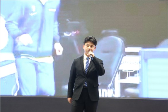 六号选手冯铂文在第二环节时,用比赛解说的方式,使我们大家身临篮球比赛的现场。