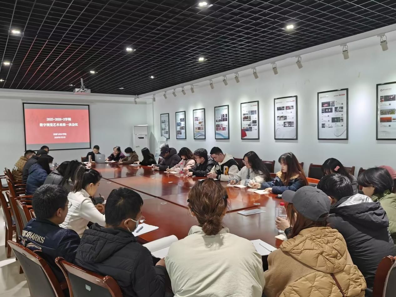 为锚定学科建设核心目标,夯实硕士学位授权申报基础,推动视觉传达设计、数字媒体艺术两大专业高质量协同发展,数字视觉艺术系于3月4日召开2025-2026学年第二学期首次全体教职工会议。系领导班子、各教研室负责人、全体专任教师参会,会议围绕传媒与设计学院硕士申报工作进行专项动员、政策解读与任务部署。
