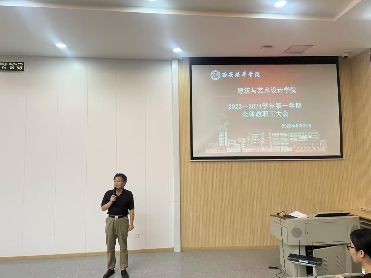 为确保新学期各项工作起好步、开好局、谋好篇,8月25日下午15:00,建筑与艺术设计学院在育英楼3505召开2023-2024学年第一学期全体教职工大会,对新一学期的工作进行了全面部署,全体教职工参加了此次大会,院长助理刘清颖主持此次会议。