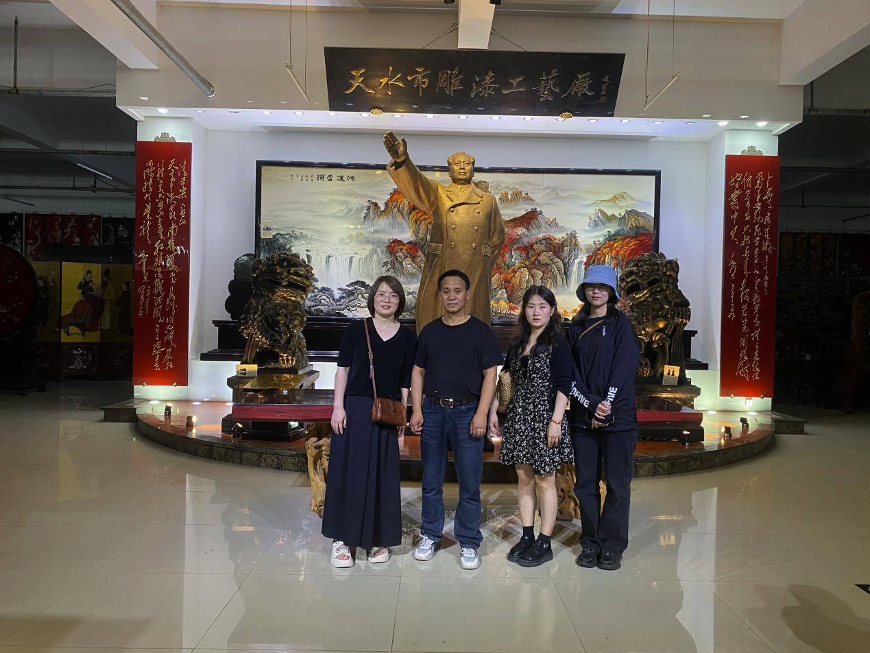 第二站天水雕漆厂,天水雕漆历史悠久,可上溯至2000多年前。雕漆工艺有镶嵌、雕填、彩绘、平磨、曝钿、描金、胎花、藏绘、印锦、脱胎、刻绘、线金堆漆、研磨彩绘等。