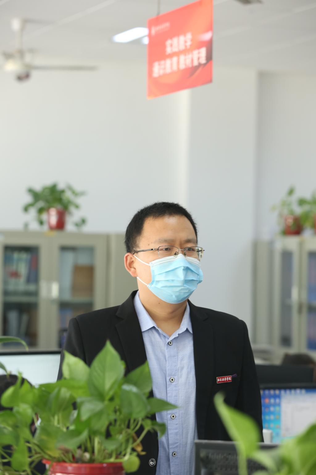 疫情封校期间,他住在学校既保障教学工作的顺利进行,还积极参与到各项防疫工作中。