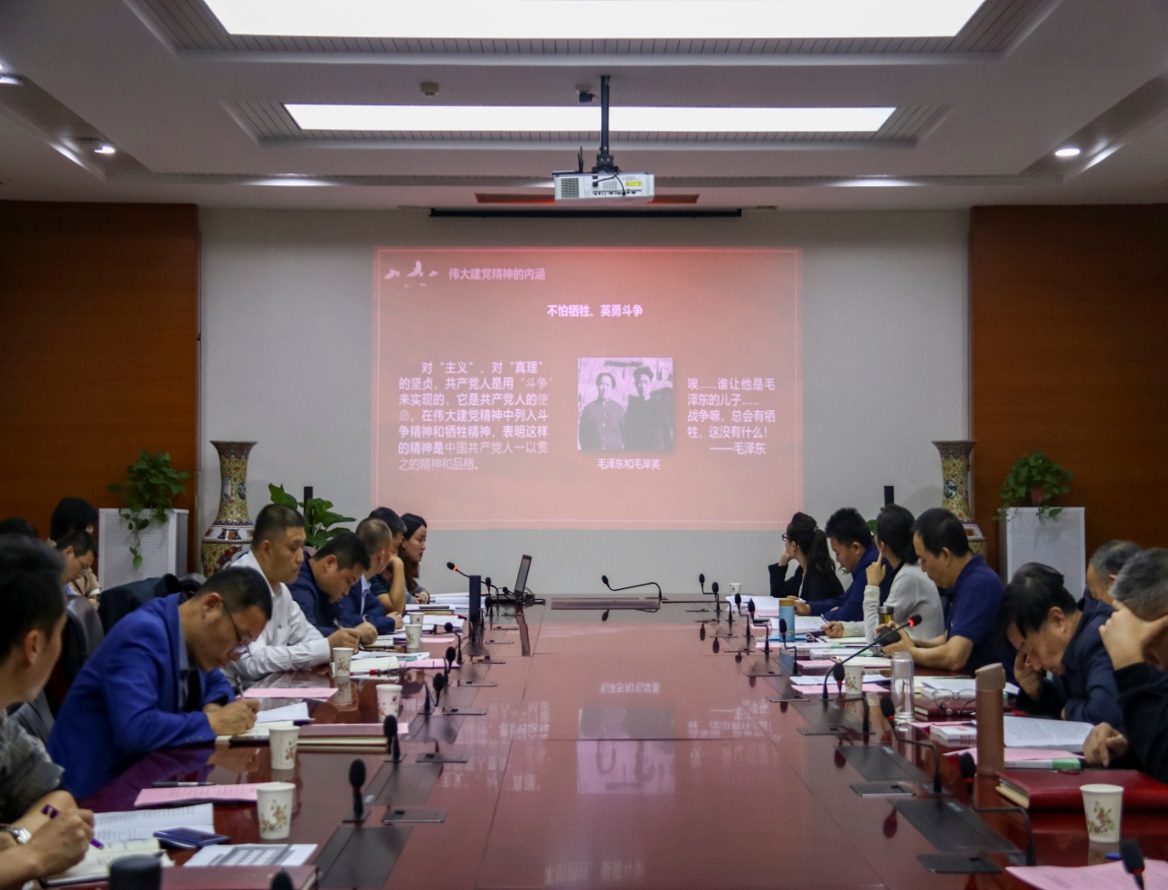 马克思主义学院教师陈欢副教授在深入研究和理解的基础上,为中心组成员系统解读了《伟大建党精神》,从建党精神的内涵、到建党精神的内在统一以及和中国共产党的精神谱系关系逐一进行了深刻解读。