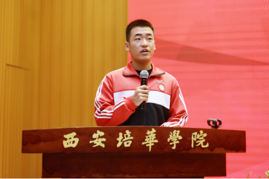 班团干部代表人文与国际教育学院汉语言文学专业2101班班长文钲强讲到, 他代表全体大一新生表态,在接下来的学习生活中,一是积极参与学校学风建设、文明行为养成的相关活动;二是将更加深刻理解学风建设的重要意义,积极行动起来,以创建优良的学风、创建姜维之班为己任;三是树立正确的学习态度,养成良好的学习习惯,不断提高专业知识水平和实践能力,提高学习的积极性、自觉性、主动性、创造性;四是坚持每天早锻炼,强健体魄,增强体质, 养成良好的生活习惯和学习习惯。五是严格遵守学生手册,增强自律意识,做到遵章守纪、诚信考试。六是倡议学生党员、学生干部、共青团员在学风建设暨文明行为养成推进过程中发挥表率作用,带动全体学生为“建设优良学风、提升文明修养”而努力。