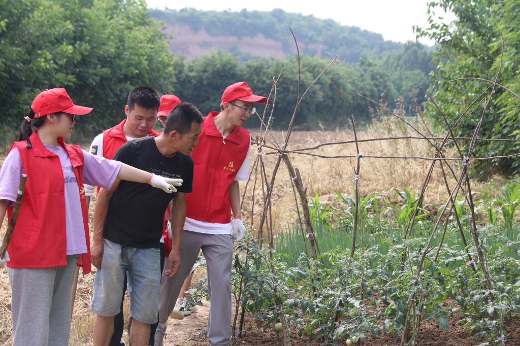 骄阳似火,村民带领师生党员们来到农民劳作的田间,望着金灿灿已收割的麦田,村民讲到“玉米具有很强的耐旱性、耐寒性、耐贫瘠性以及极好的环境适应性,营养价值较高”。“还有像地里刚成熟的西红柿,都是我们自己进行种植食用,营养极高。”在村民的讲解下,使学生们切身感受“锄禾日当午”的辛劳,体会“粒粒皆辛苦”的不易。明白幸福的生活是靠奋斗出来的,只有苦干实干、艰苦奋斗、不懈努力,才能梦想成真、创造未来,收获幸福甜蜜的果实。