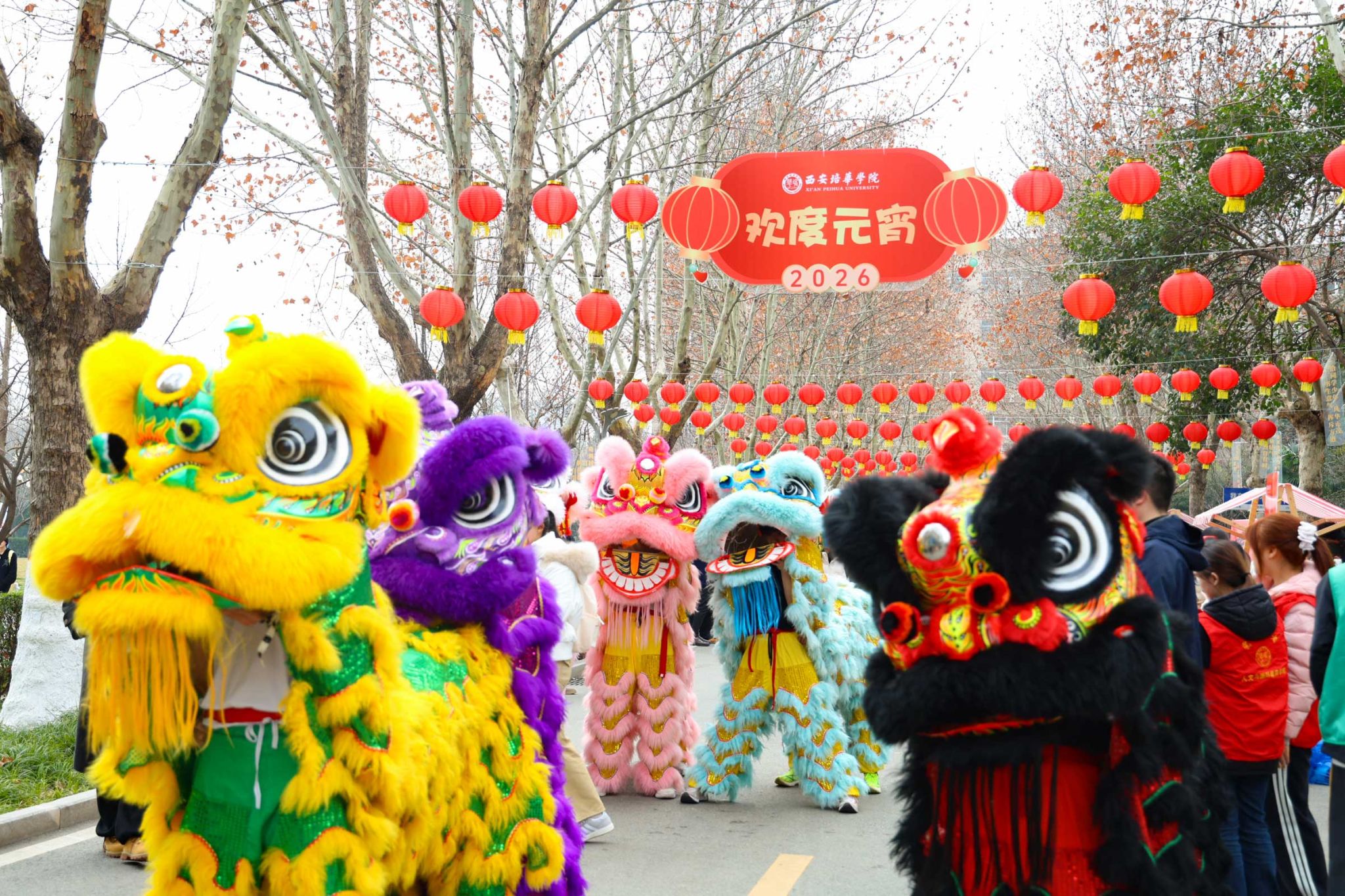社火走进培华校园:正月十五闹红火,体育学院和校团委把“社火”搬进了校园!六头彩色狮子踩着锣鼓点霸气登场,翻腾跳跃,直接把元宵氛围拉满。围观同学里三层外三层,狮子们眨巴着大眼睛,摇头晃脑跟观众互动。“摸摸狮头,万事不愁!”锣鼓声、笑声、欢呼声混在一起,现场堪比庙会!