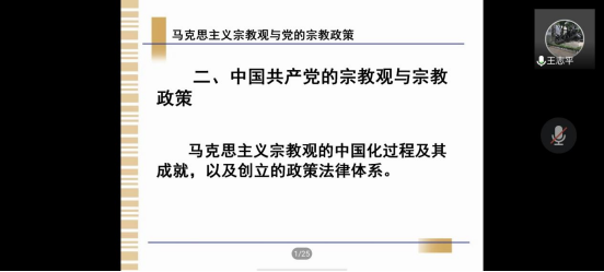 为提高广大师生对我国民族宗教政策的理解、铸牢中华民族共同体意识,4月19日,西安培华学院马克思主义学院教授、国家哲学社会科学基金项目评审专家王志平教授应邀通过线上直播的方式,为广大师生做题为《马克思主义宗教观与党的宗教政策》的讲座。该讲座为网络思想政治教育系列活动之宗教观讲座。