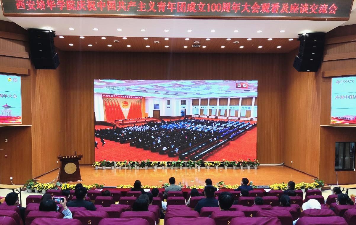 5月10日上午,庆祝中国共产主义青年团成立100周年大会在北京人民大会堂隆重举行。习近平总书记出席大会并发表了重要讲话。西安培华学院根据省委教育工委要求,在全校安排了三个分会场分别组织师生共同收看。校党委领导班子成员、党委职能部门责任人、思政课教师、辅导员以及大学生共90余人参与了观看活动。
