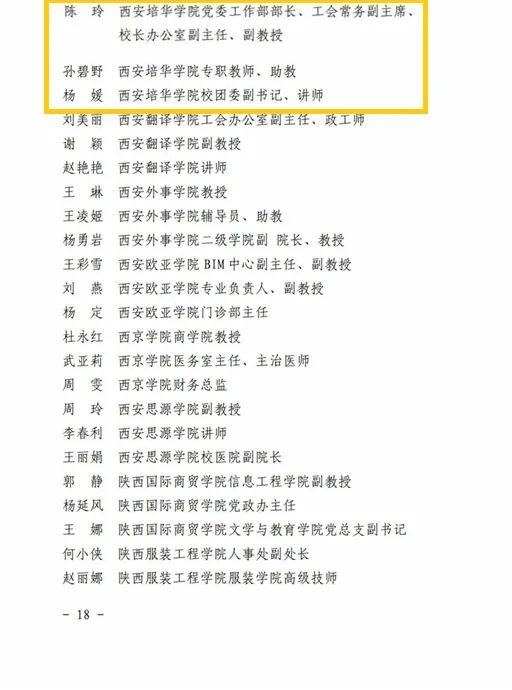 近日,陕西省教科文卫体工会印发《关于表彰 2022 年陕西省教科文卫体系统 五一巾帼标兵和标兵岗的通报》(陕教科文卫体工字〔2022〕19 号),我校党委工作部、人文与国际教育学院综合办公室荣获“陕西省教科文卫体系统五一巾帼标兵岗”荣誉称号,党委工作部陈玲、传媒学院孙碧野、校团委杨媛三位教职工荣获“陕西省教科文卫体系统五一巾帼标兵”荣誉称号。