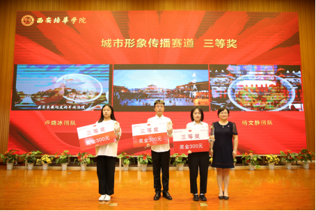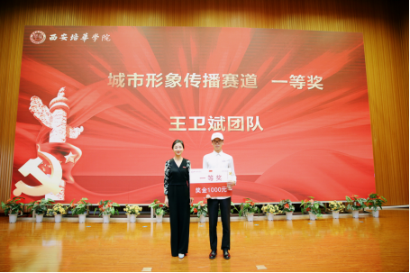 西安培华学院党委教师工作部部长唐学学为城市形象传播赛道三等奖获得者颁奖