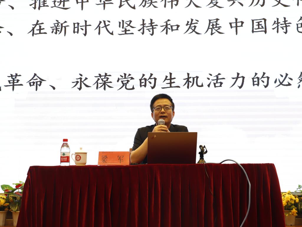 梁军教授首先介绍了开展本次党史学习教育的背景,他强调:习近平总书记高度重视党史学习,特别是党的十八大以来,发表了一系列重要讲话和重要论述,对什么是党的历史,为什么要学习党史,用什么立场观点方法学习党史等重大问题进行了科学阐释。