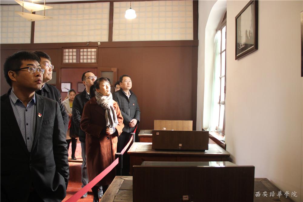 为继承红色革命精神、深入学习十九大精神,西安培华学院机关第五、第六党支部与陕西省教育厅民教处、学生处党支部30余名党员于12月15日上午,前往八路军西安办事处纪念馆开展了以“不忘初心,牢记使命”为主题的党日活动。在讲解员的带领下,参加活动的党员进行了认真的参观学习。