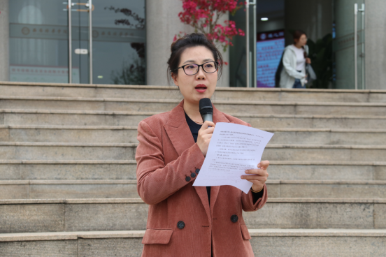校工会常务副主席陈玲宣读《西安培华学院健走俱乐部章程》