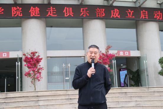 理事长姜波亲临启动仪式现场并讲话:关心关爱教职工身体健康一直是学校关注的重点工作之一,健步走这项运动可以维持心肺功能的健康,预防多种疾病,学校成立健走俱乐部,希望师生在繁忙的工作、学习之余,多关注自己的身体健康,以强健的体魄和昂扬的精神状态投入到工作和生活中去,为美好明天打下健康好基础。