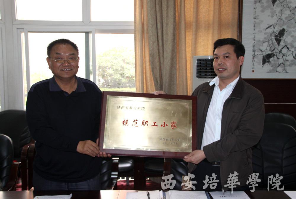 为弘扬先进,发挥榜样的导向作用,激励各级工会组织和广大工会干部立足岗位创先争优,为办好人民满意的教育事业建功立业。陕西省教育工会日前表彰了一批深受广大教职工群众信赖和赞誉,并在工会工作中做出了优异成绩的先进集体和先进个人。我校人文与艺术学院工会荣获“陕西省教育系统模范职工小家”光荣称号;田红同志荣获“陕西省教育系统优秀工会工作者”称号;薛清同志荣获“陕西省教育系统优秀工会积极分子”称号。