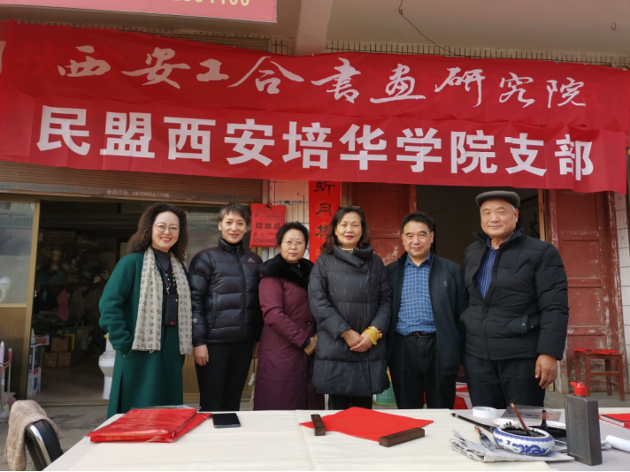 2021年1月27日。陕西省民盟培华学院支部前往西安市灞桥区红旗街道办高桥村举办了文化惠民春联进农家的活动。盟员们现场义务为百姓写春联送福字。送去了一份笔尖下的年味,营造出喜气洋洋过大年的气氛。