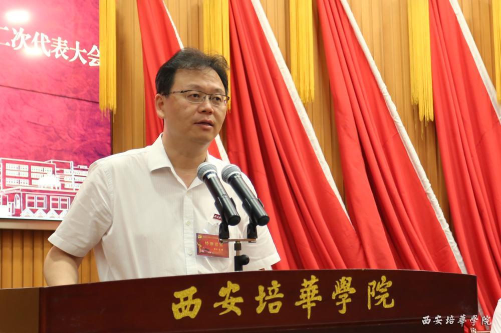 省委高教工委委员、组织部部长王军周同志在讲话中代表省委高教工委对大会的召开表示热烈祝贺,对全校师生表示诚挚问候。他指出,中国共产党西安培华学院第二次代表大会的召开,是在“十三五”开局起步、学校改革发展关键时期召开的一次重要会议,是学校全体党员和师生员工政治生活中的一件大事、喜事,对于学校进一步加强党的建设,全面深化改革,实现新的发展目标具有重要的意义。