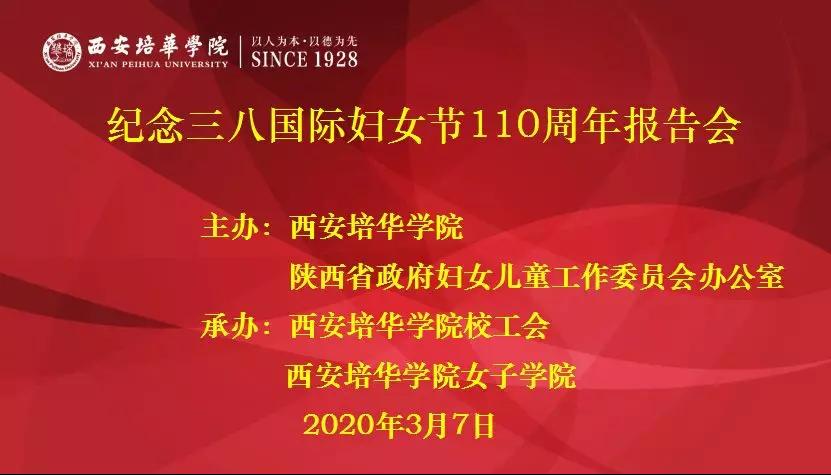 西安培华学院、陕西省政府妇女儿童工作委员会联合举办纪念三八国际妇女节110周年报告会。