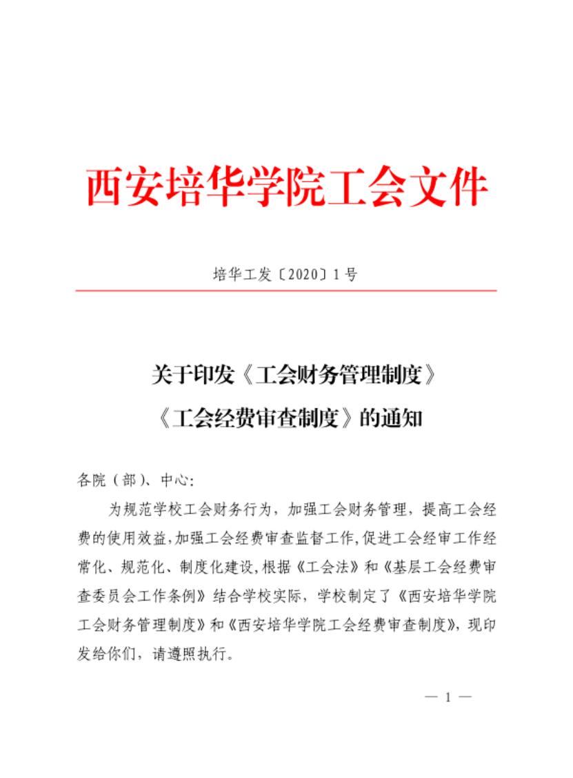 西安培华学院关于印发《工会财务管理制度》《工会经费审查制度》的通知