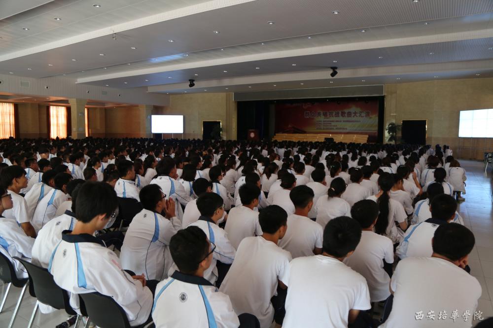 我校师生欢聚一堂共同收看阅兵式,纪念抗战胜利70周年