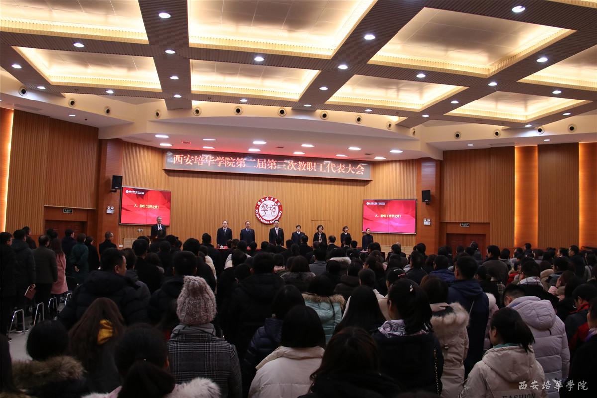 1月10日,西安培华学院第二届第三次教职工代表大会隆重召开。会议在庄严的国歌声中开幕,理事长姜波致辞并发表热情洋溢的新年讲话,学校领导和教职工代表近500人参加了此次会议,会议由工会主席徐国富同志主持。