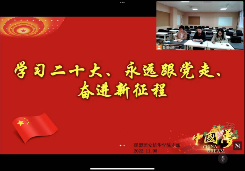2022年11月8日,民盟西安培华学院支部采用线上线下结合的形式召开了党的二十大会议精神学习会。
