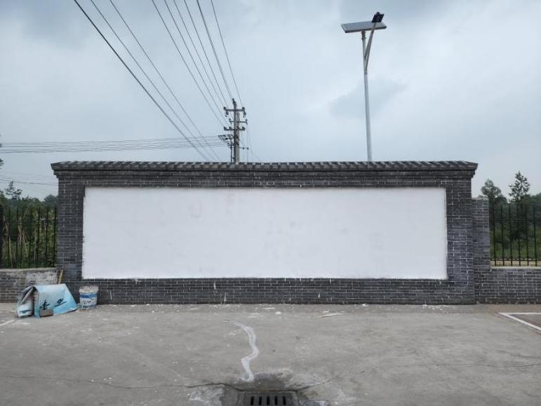团队在墙绘的同时,也翻新村里的几面宣传墙,重新抹腻子,上油漆。