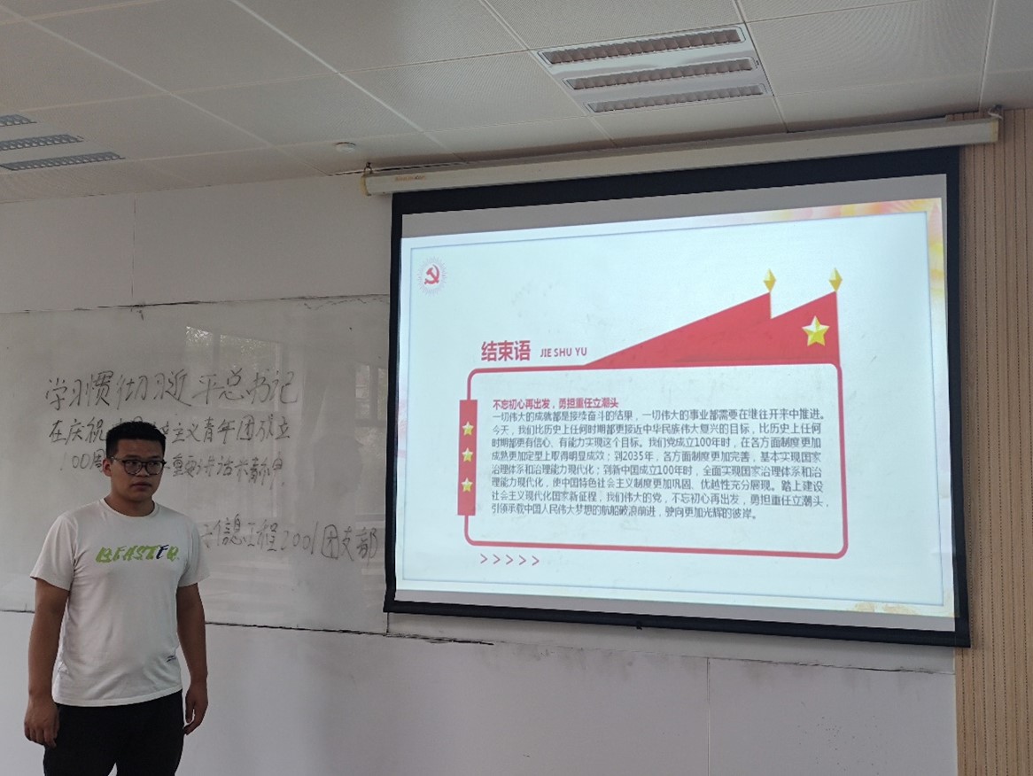 为深入学习贯彻习近平总书记在庆祝中国共产主义青年团成立100周年大会上的重要讲话精神,庆祝共产主义青年团成立100周年,凝聚团员力量,团结带领全院广大青年以实际行动迎接党的二十大胜利召开。5月23日,智能科学与信息工程学院召开学习宣传贯彻习近平总书记在庆祝中国共产主义青年团成立100周年大会上的重要讲话专题团课。学院党总支书记、副书记,团委书记及全体辅导员参与本次专题团课。