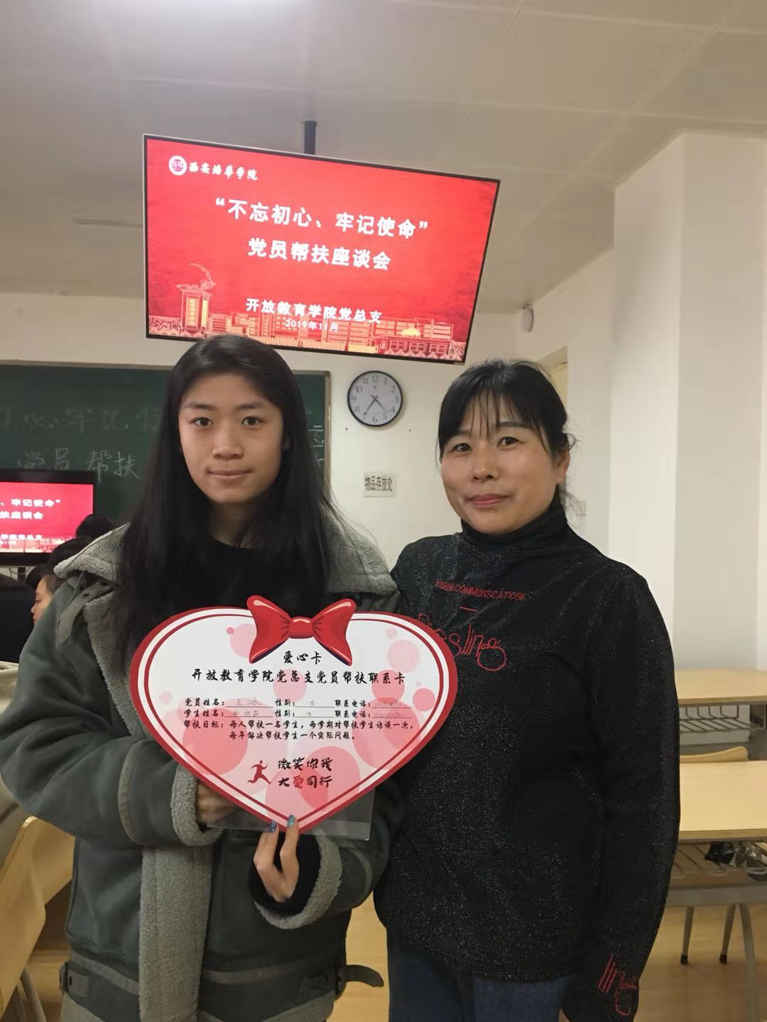 翁洁老师帮扶的胡海涛同学,从一个学习态度不端正的问题学生转变为按时上课、认真做笔记的好学生;杜苗果老师为家境贫寒的蔡娟同学提供了勤工俭学机会,得到了家长的好评。王冰老师细心指导孙鑫如同学学习美术专业知识,学生参加绘画比赛取得优异成绩等。老师们的悉心呵护换来的是学生们的真诚感谢,被帮扶学生也就参与帮扶活动后自己的成长和进步向老师们做了汇报。朱思雨同学说:“通过参加帮扶活动,让我感受到学校和老师对我们的关心和关注,让党的温暖深入我心,也让开放教育学院党支部的温暖深入到每一位学子的心中”。