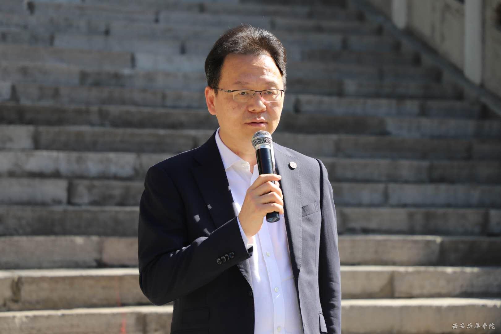 姜波理事长也一同前来,为到场的传媒学子进行爱国主义教育——发扬革命传统,谱写时代新篇,继承先烈遗志,铸就共同理想. 最后,在碑亭台阶前,姜波理事长同全体传媒学子亲切合照。